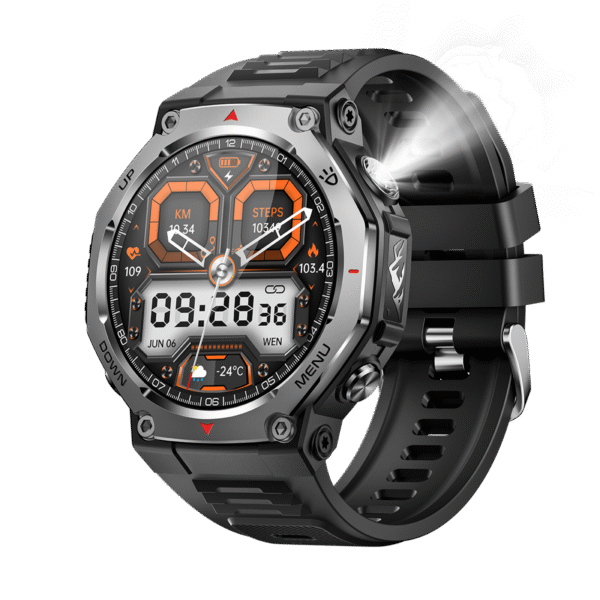 KT80 Smartwatch Metal Case 3ATM Waterproof BT Call Strong Flashlight Long Battery Men Smart Watch