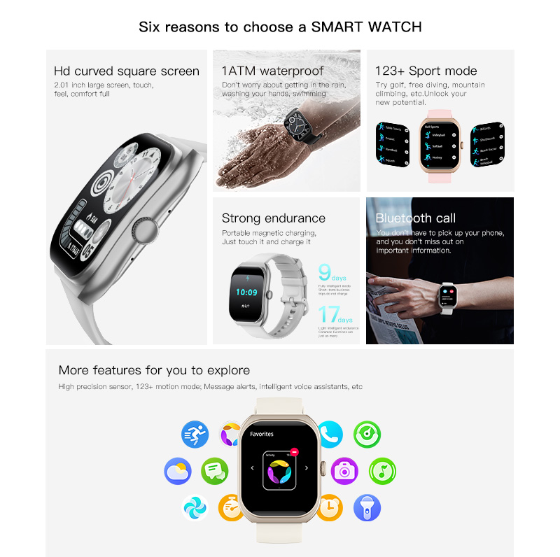 2.01 HD Curved Screen 1ATM Waterproof Long Battery BT Call Health Monitoring Z172 Smart Watch